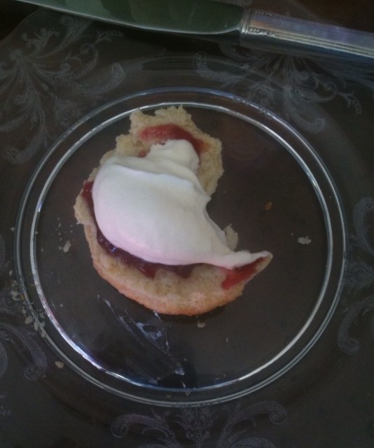 The scones were a triumph topped with preserves and freshly whipped (unsweetened) cream. But I couldn’t help but notice that the few that were left were the “pure” scones made from self-rising flour.