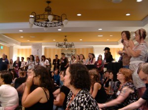 A couple of bloggers in the audience are already doing this. One woman in Sacramento is working to get city council to allow gourmet food trucks within city limits. Another woman quit her day job, obtained a grant from her city, and now teaches cooking classes to low-income communities. She blogs at Dianasaurdishes.