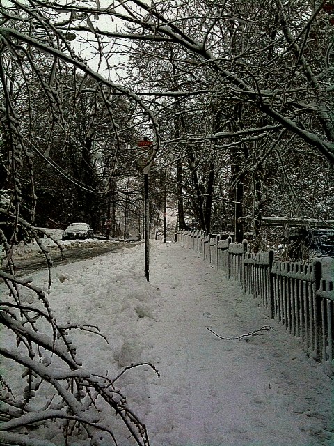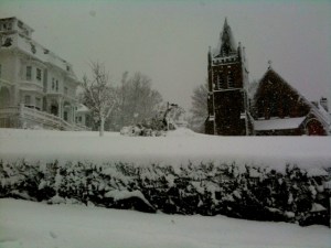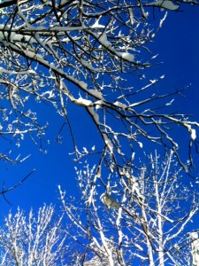 It’s kind of beautiful, isn’t it? A snowy gloaming that erases the true time of day. We had sugar-frosted trees for days before a deep freeze turned them to ice. Brittle branches shone like glass.