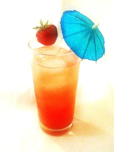 To serve, pour into glasses filled with ice and top off with sparkling water or seltzer. Garnish with a few strawberries slices and a mint leaf.