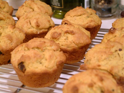 The end result was delicious! Plump raisins in a pumpkin-y muffin with just a hint of toasted nuts.