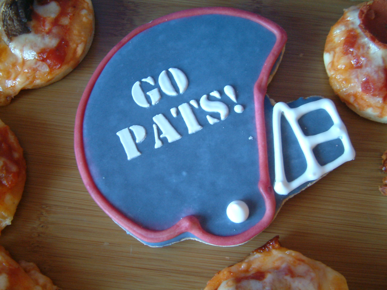 1. Purchase a ball or two of frozen pizza dough in your local grocery frozen food section (Whole Foods, City Feed, and Trader Joe’s in my neighborhood all had them. I found the Go Pats! helmet cookies at City Feed).