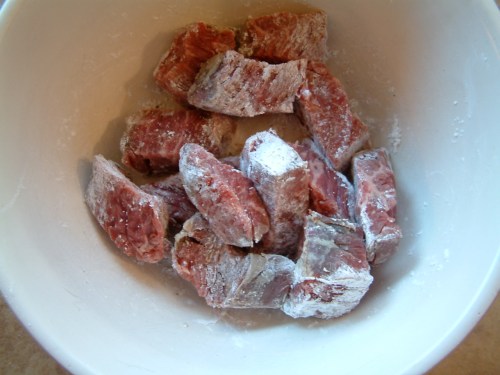 Toss together beef, salt, pepper, and cornstarch until meat is well coated.