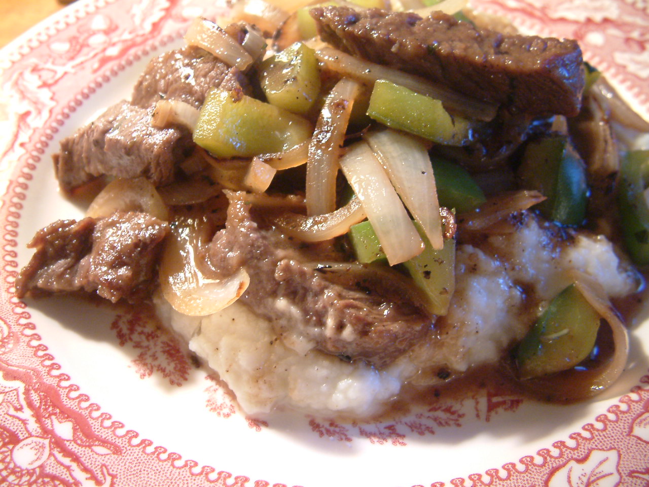 Beef stir fry is delicious over rice or egg noodles. For a non-carb option, try a steamed cauliflower mash by pureeing the cauliflower with some butter and half-and-half (see photo).