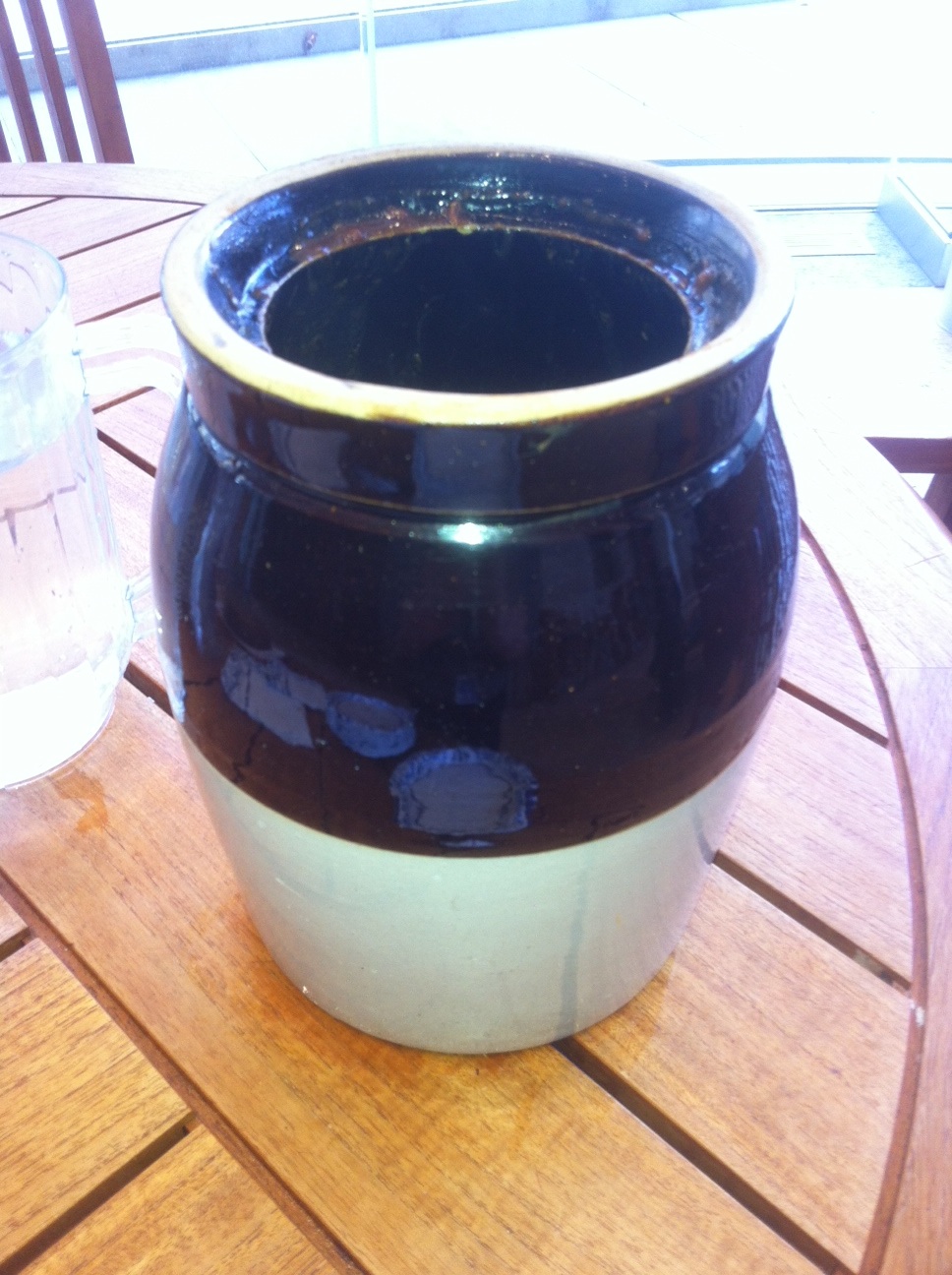 Pick over beans, cover with cold water, and soak overnight. In the morning, drain cover with fresh water, bring to a boil very slowly, then simmer until the skins, “which is best determined,” wrote Fannie Farmer “by taking a few beans on the tip of the spoon and blowing on them, when the skins will burst if sufficiently cooked.” Miss Farmer adds that beans tested this way “must, of course, be thrown away.” Drain beans. Scald the salt pork, which should be well streaked with lean, by letting it stand in boiling water for 5 to 10 minutes. Cut off two thin slices, one to place in bottom of pot, the other to be cut into bits. Score rind of the remaining piece with a sharp knife. Mix dry mustard, salt, black pepper, and molasses. Alternated the layers of beans in the pot with the molasses mixture and the bit of pork. If you use an onion, bury it in the middle. When the bean pot is full, push the large piece of pork down into the beans with the rind sticking up. Add boiling water to cover, put the lid on, and bake all day (a minmum of 6 to 8 hours) in a 250 degree F. oven. Check from time to time and add boiling water if needed. Uncover pot during last hour of baking so the rind can brown and crisp. To this day many old-timers believe the rich brown goodness of Boston Baked Beans is largely due to the earthenware bean pot, with its narrow throat and big bulging sides. Lacking one of these pots, you can use any earthenware casserole that has a cover. Serves 10 to 12.