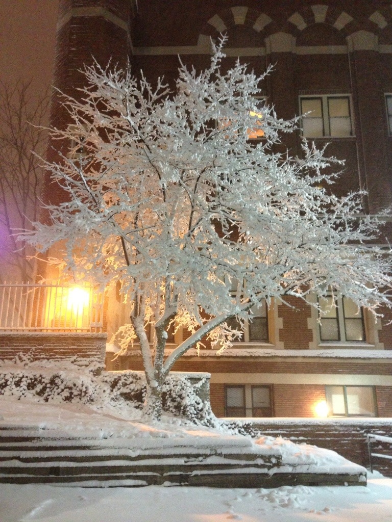 The walk home was eerie and quiet beneath the wind. A ban on all vehicles except plows and emergency vehicles emptied the streets. We wished for a horse drawn sleigh and hot baked potatoes in our pockets to keep warm!