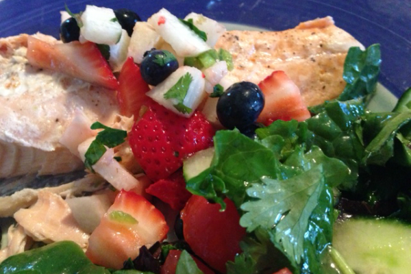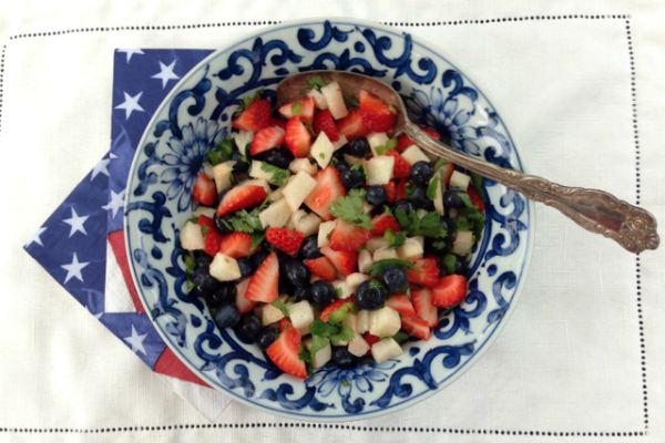 This salsa combines the red, white, and blue of strawberries, jicama, and blueberries with a bit of heat from jalapeño. It’s delicious on a piece of fish or as a side for corn chips.