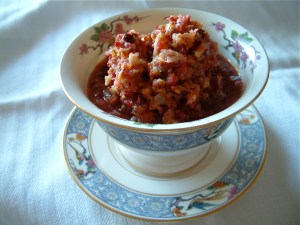 I was delighted to come across this recipe in “Cape Cod Table” by Lora Brody. It has walnuts and lime juice to keep that tangy texture that I like. It also uses brown sugar and maple syrup as sweeteners instead of white sugar. I like a dish that tells a story and this one tells the story of New England. (more…)